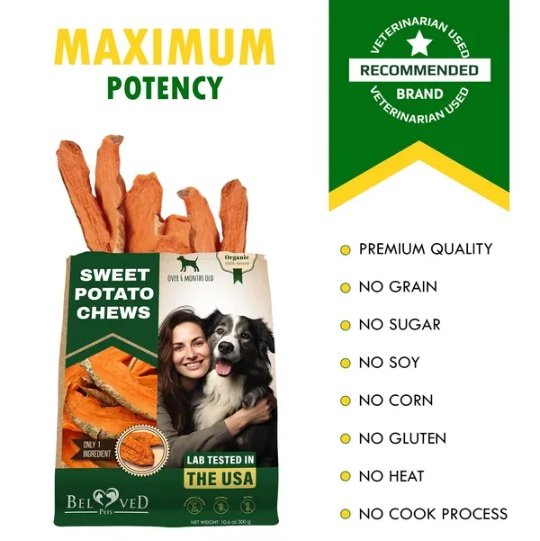 Give your furry friend a snack that’s as wholesome as it is delicious! Our Sweet Potato Chips Treats for Dogs are made from 100% natural sweet potatoes — nothing artificial, no grains, and absolutely no added preservatives.